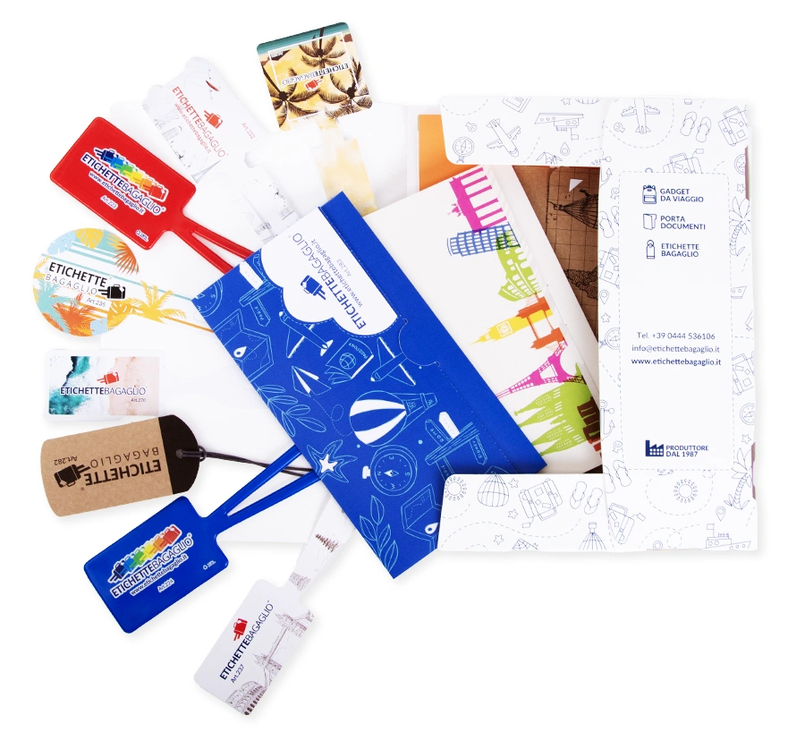 Fatti sorprenderti dalla qualità dei nostri prodotti, la perfezione della stampa, i colori vibranti e la resistenza del materiale. Richiedi il nostro campionario di etichette bagaglio e portadocumenti gratuitamente.