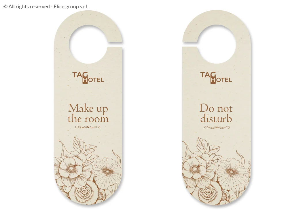 Cartello non disturbare per hotel. Realizzato in carta da 300 gr/m², con un forte orientamento ecologico e viene prodotta utilizzando fonti rinnovabili non legnose e fibre 100% riciclate. Qui puoi trovare la scheda tecnica del materiale.
