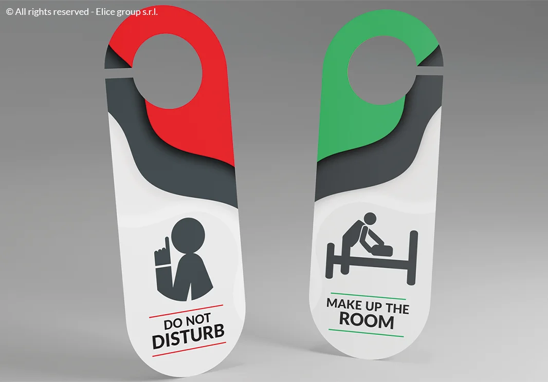 - Grazie alla stampa digitale a colori, si possono riprodurre una grande varietà di immagini, scritte e frasi seguendo il proprio gusto o stile. Si può anche scegliere quale messaggio si vuole trasmettere. Grazie alla stampa digitale, si può rappresentare ad esempio, oltre alle scritte NON DISTURBARE o RIFARE LA CAMERA, il logo, i recapiti o il sito internet dell’hotel. In questo modo i cartelli non disturbare diventano un accessorio utile da avere sempre a portata di mano, per offrire un servizio extra ai propri ospiti.