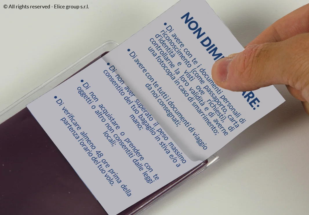 - La tasca di destra è larga 5 cm e tiene ben fermo in sede il passaporto, mentre la tasca di sinistra è di 3 cm studiata per facilitare le operazioni doganali.