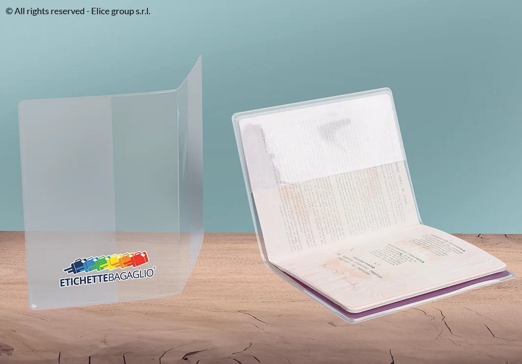 - Copertina porta passaporto trasparente realizzata per custodire e proteggere il passaporto.