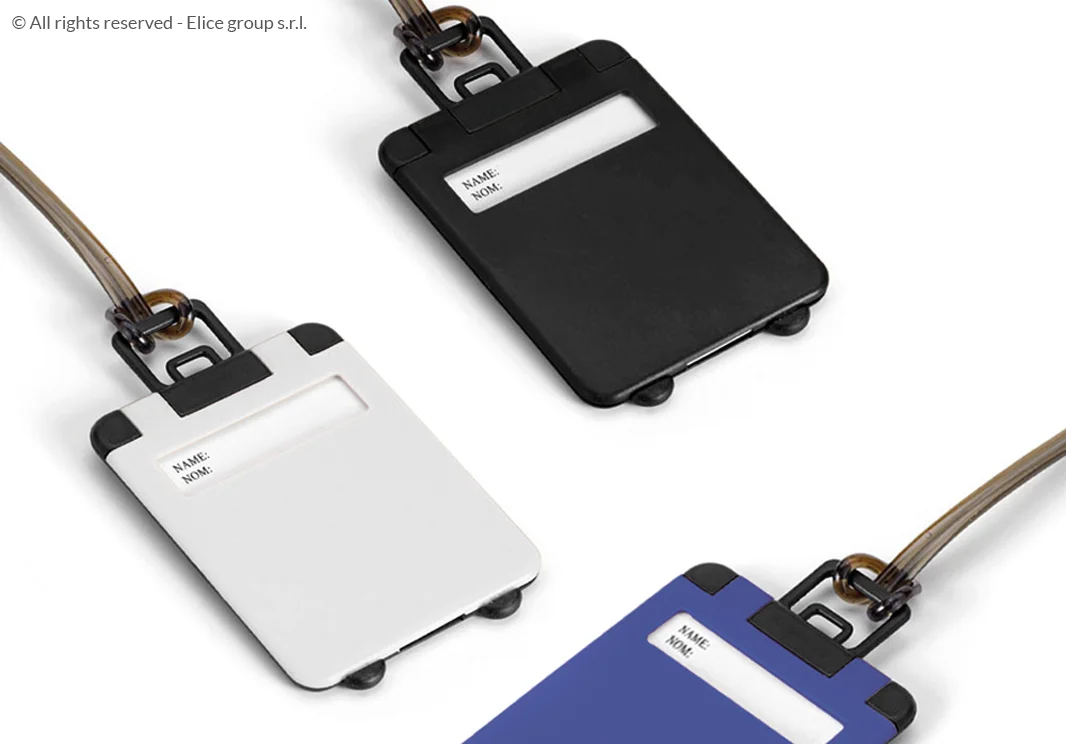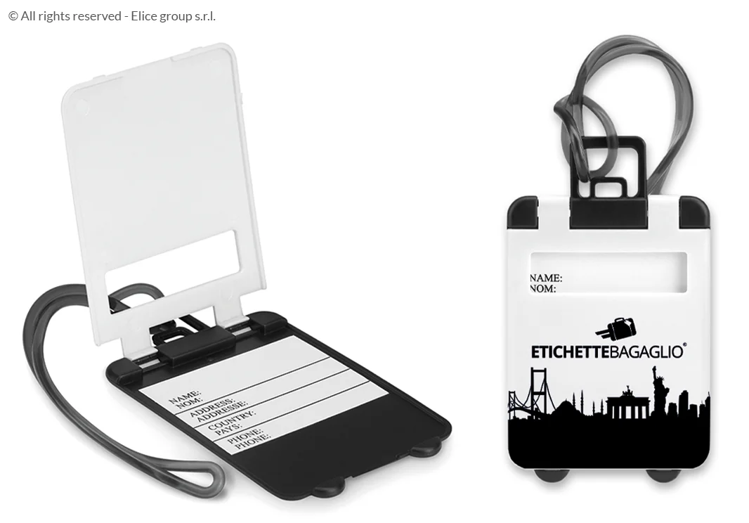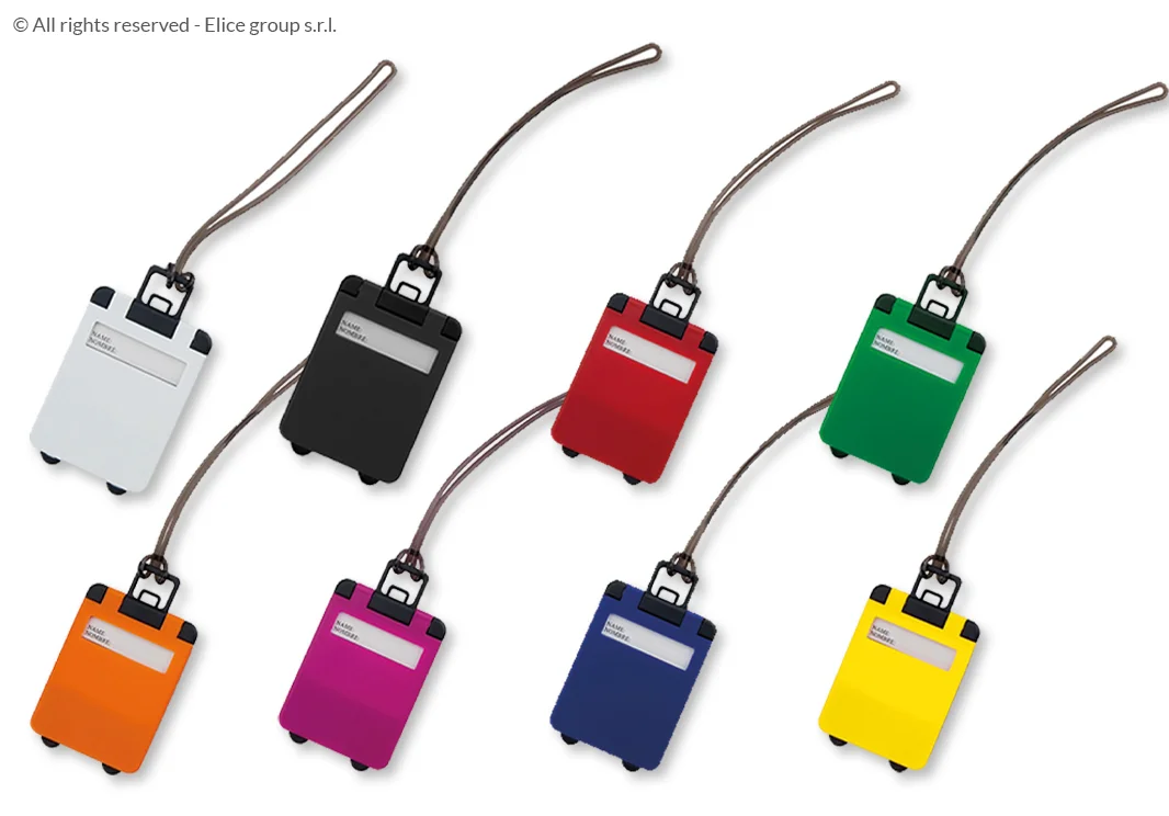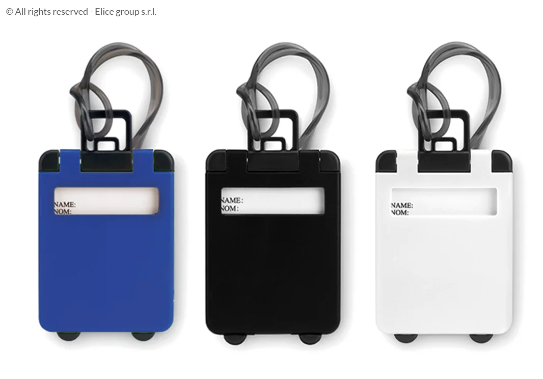 Etichetta in plastica rigida dalla graziosa forma di trolley ideale per ritrovare il tuo bagaglio. La parte esterna dell’etichetta in plastica rigida a forma di trolley si può personalizzare con il testo e caratteri identificativi dell’agenzia. All’interno c’è il cartoncino che tutela la tua privacy, per scrivere i dati del viaggiatore. L’etichetta è provvista di laccetto in gomma per agganciarla facilmente al proprio bagaglio.