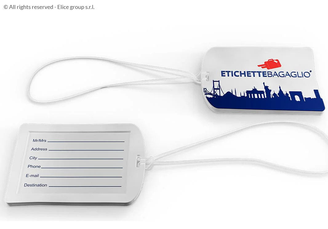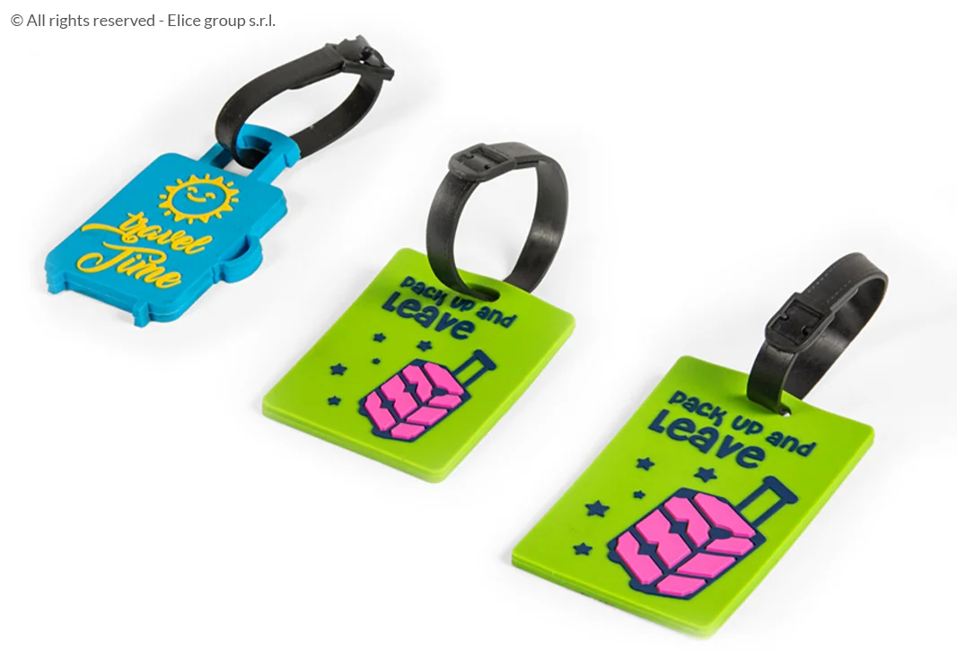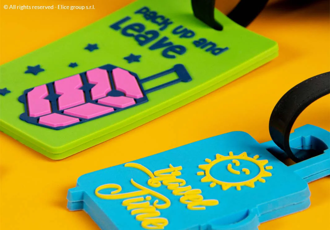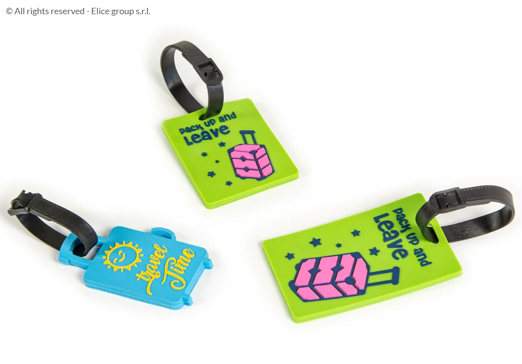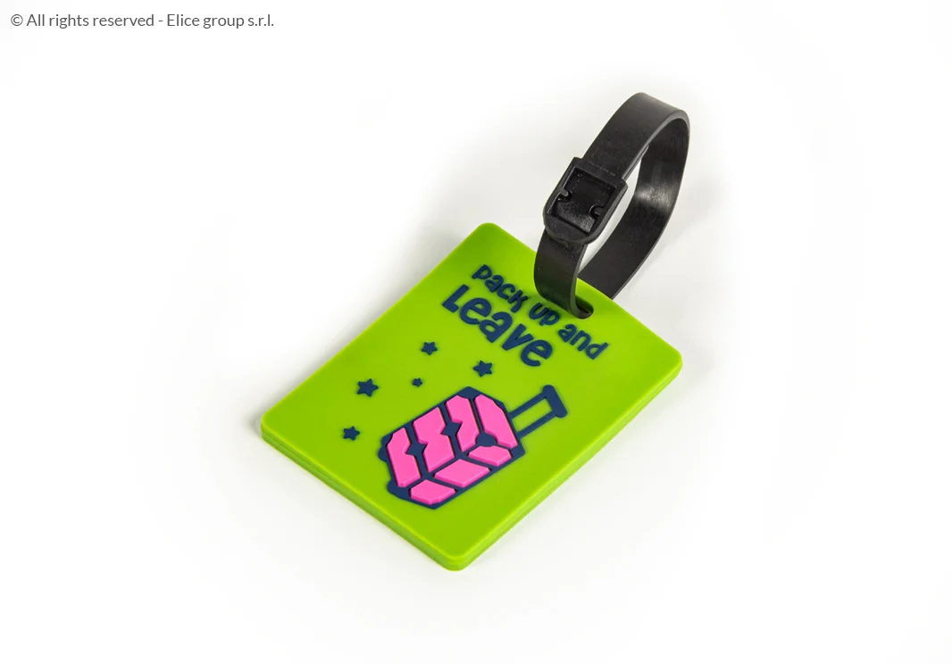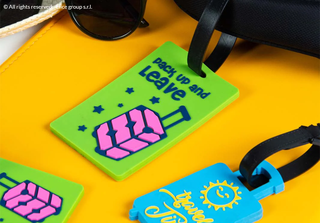 - Etichetta valigia con stampa 2D realizzata su misura in plastica morbida. Questa etichetta bagaglio è sicuramente molto originale! In primo luogo il materiale con cui è realizzata l’etichetta bagaglio è morbido al tatto e molto colorato, questo fa si che l’etichetta sia perfetta per identificare facilmente non solo valigie, ma anche trolley e zaini.
