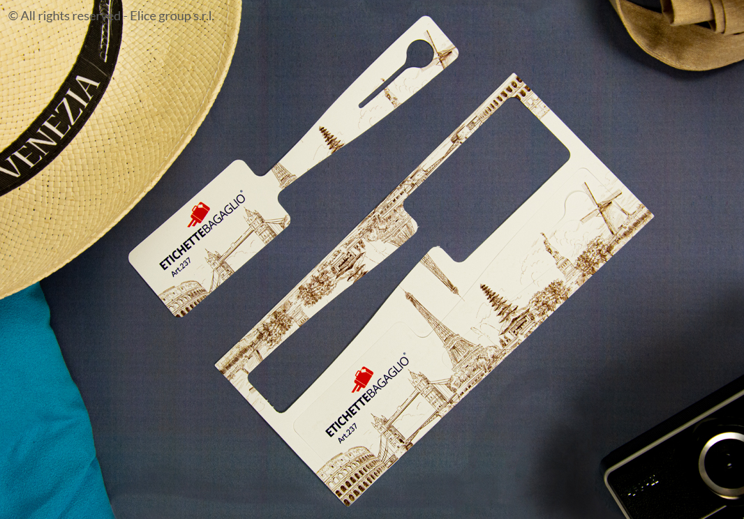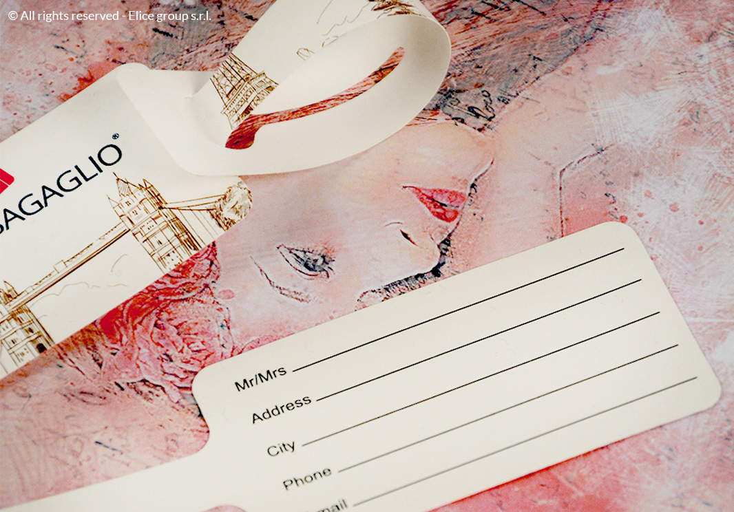 - Il set di due etichette permette di scegliere due grafiche diverse per ognuna, dando via libera a infinite personalizzazioni. Infatti, la parte davanti ha un’ampia superficie dove si possono stampare il logo, l’immagine e i dettagli che più rappresentano e identificano l’agenzia per avere così un prodotto dallo stile unico e personalizzato.