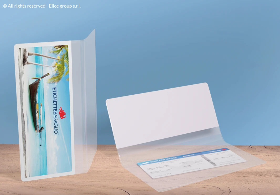 - due interne completamente trasparenti per una semplice e immediata lettura dei documenti all’interno. Inoltre tengono ben fermi documenti e carte di viaggio proteggendoli durante gli spostamenti. Perfette per avere a portata di mano i documenti necessari durante il viaggio: carta di identità carte d’imbarco, assicurazione.