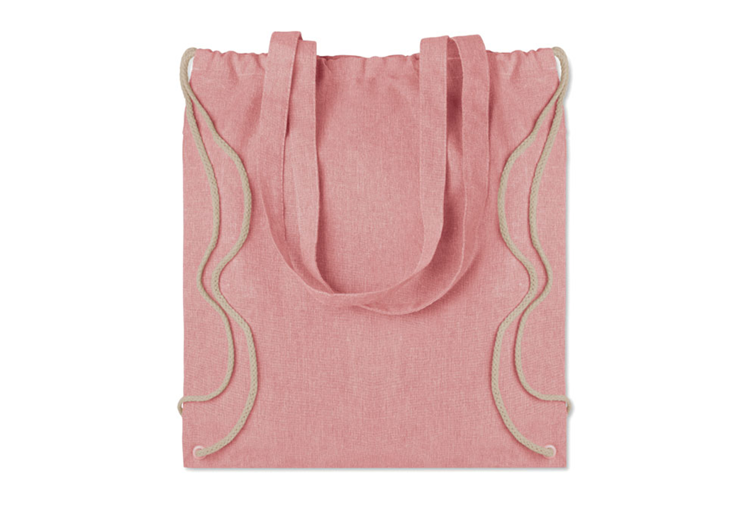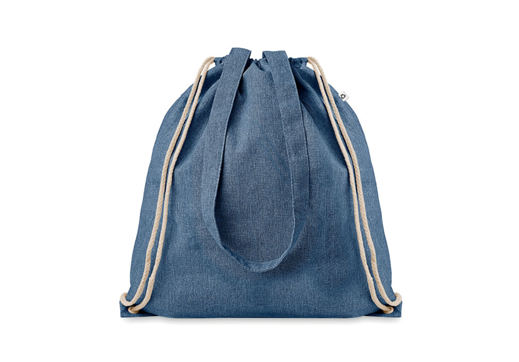 Sacca realizzata in cotone riciclato e poliestere, con coulisse, manici lunghi