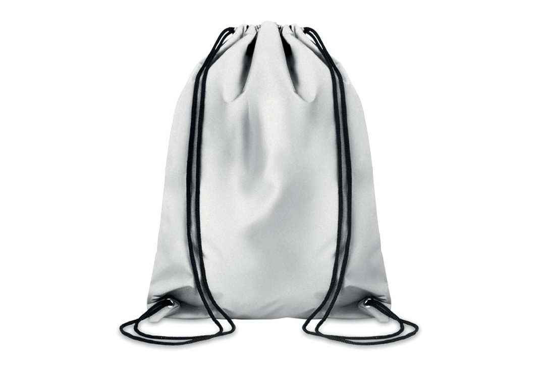 Sacca con coulisse riflettente in poliestere in RPET, chiusura a strozzo