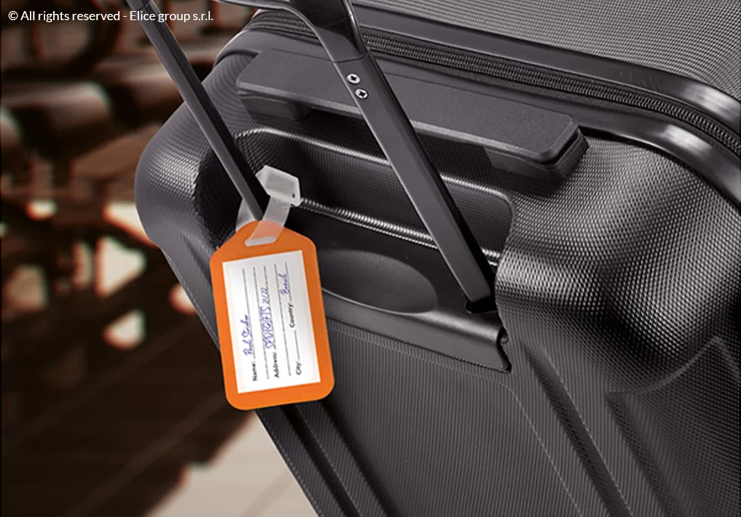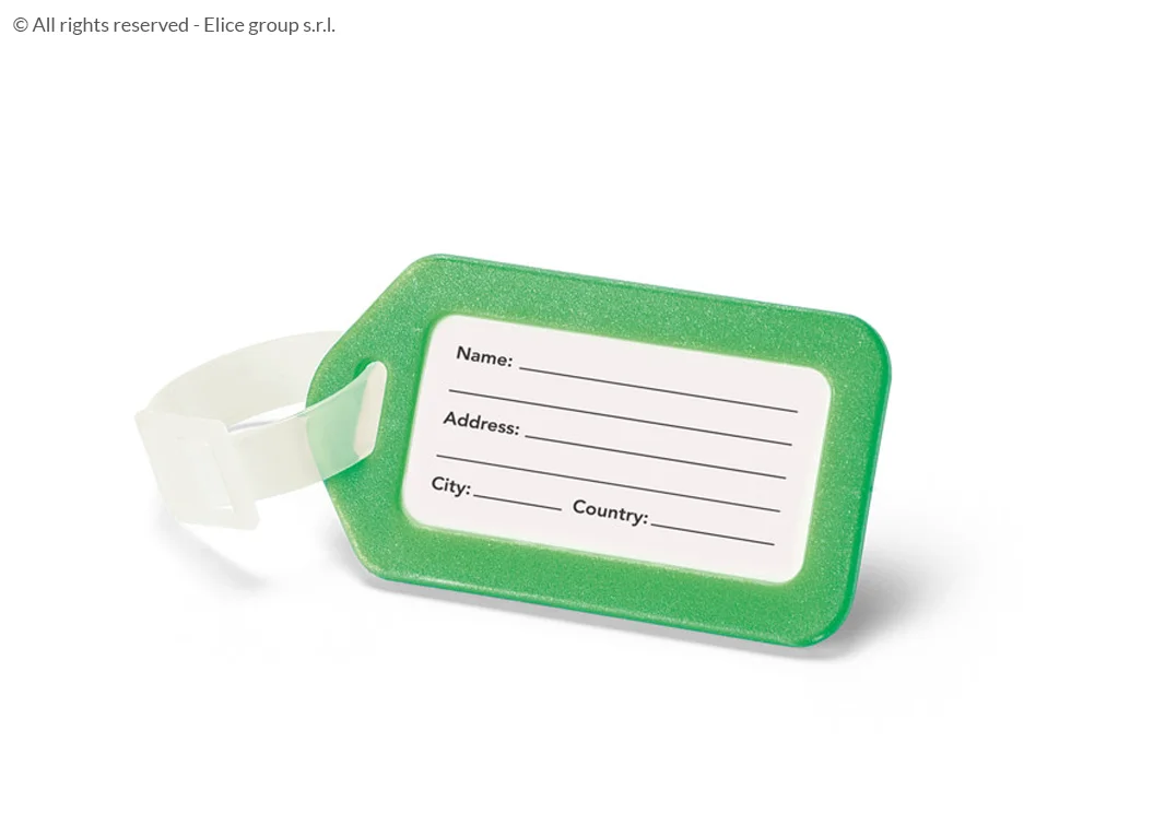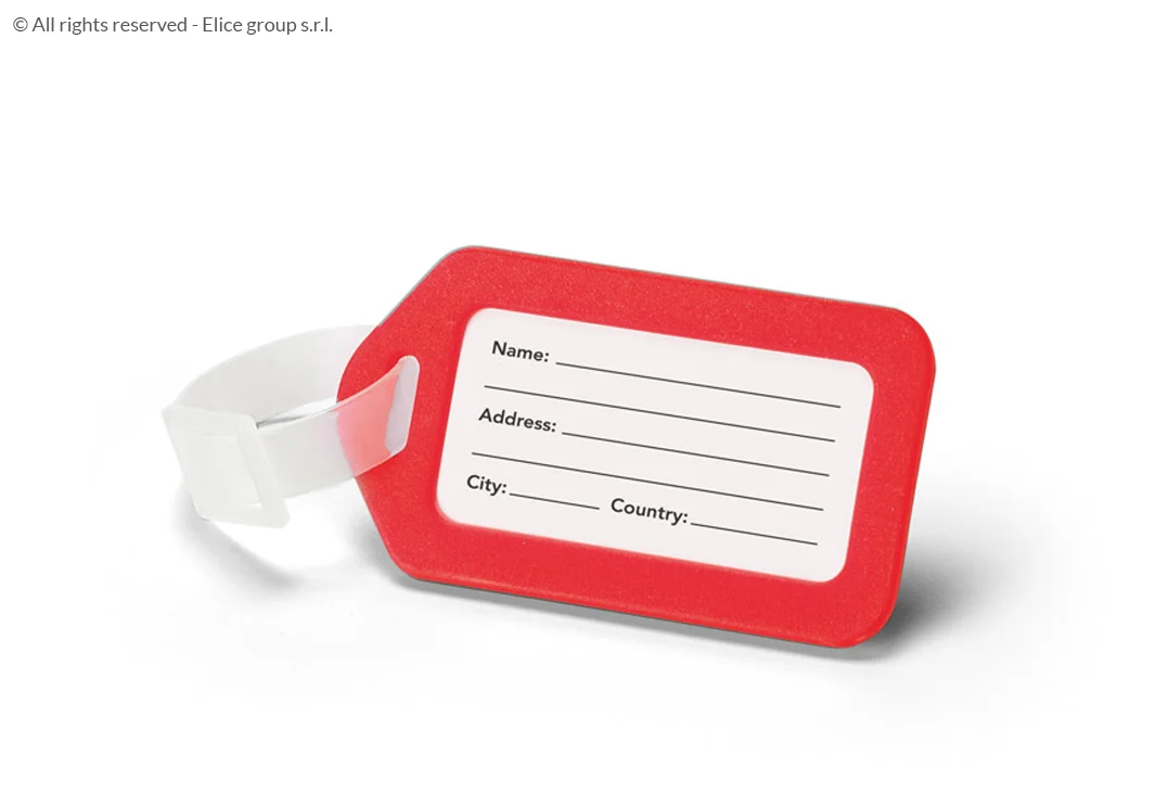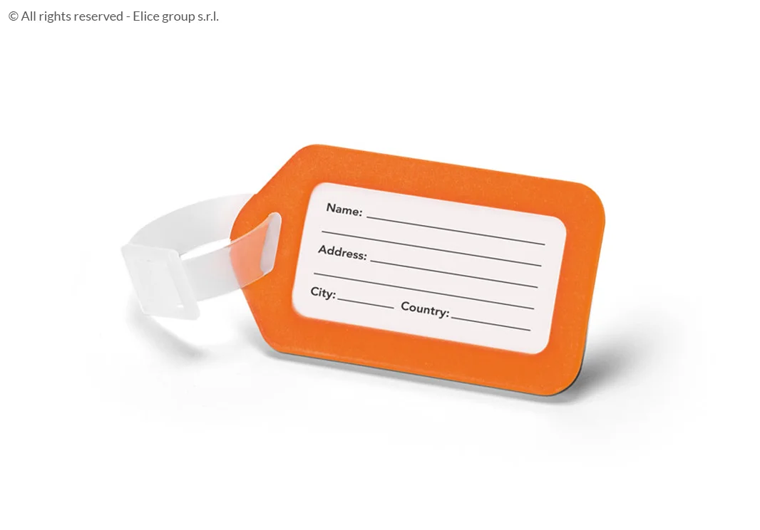 - La targhetta valigia è realizzata in plastica (PP), ed è di forma rettangolare e lineare. Punto di forza di questa etichetta è il fatto che è molto semplice, leggera e compatta. La targhetta è disponibile in diversi colori che sicuramente si adattano alle diverse esigenze di ognuno. Infatti, si può acquistare la targhetta nei colori: rosso, bianco, verde blu o arancione