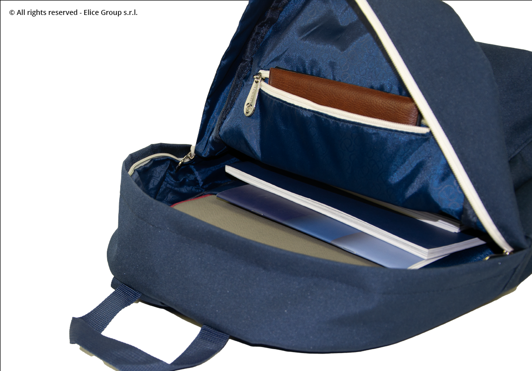 • Zaino prodotto in poliestere, materiale resistente alle intemperie e all’acqua.