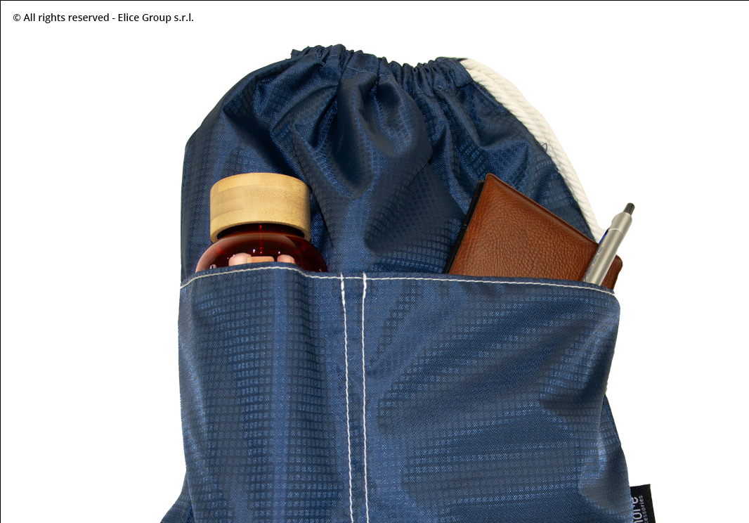 - Sacca con chiusura a strozzo in corda molto capiente, perfetta per gite fuori porta, ma anche durante escursioni e viaggi. La sacca è anche ideale per un uso quotidiano.